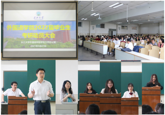 (摄/谢佳钰 文/张世瑾)为提高我院学生考研热情、树立升学深造的信心,帮助学生明确目标、科学规划,5月27日下午外国语学院在12教102召开了2022届毕业生考研动员大会。副院长付小秋博士、党委副书记程坤老师、辅导员车桥老师、2021届考研优秀学生代表以及200余名2018级学生参加
