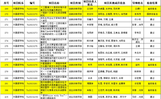 根据《关于做好2024年我校大学生创新创业训练计划项目结题验收、阶段检查工作的通知》要求,学校学院逐级组织开展了对在研的大学生创新创业训练计划项目进行阶段检查与结题验收的工作,现将检查验收情况通报如下: