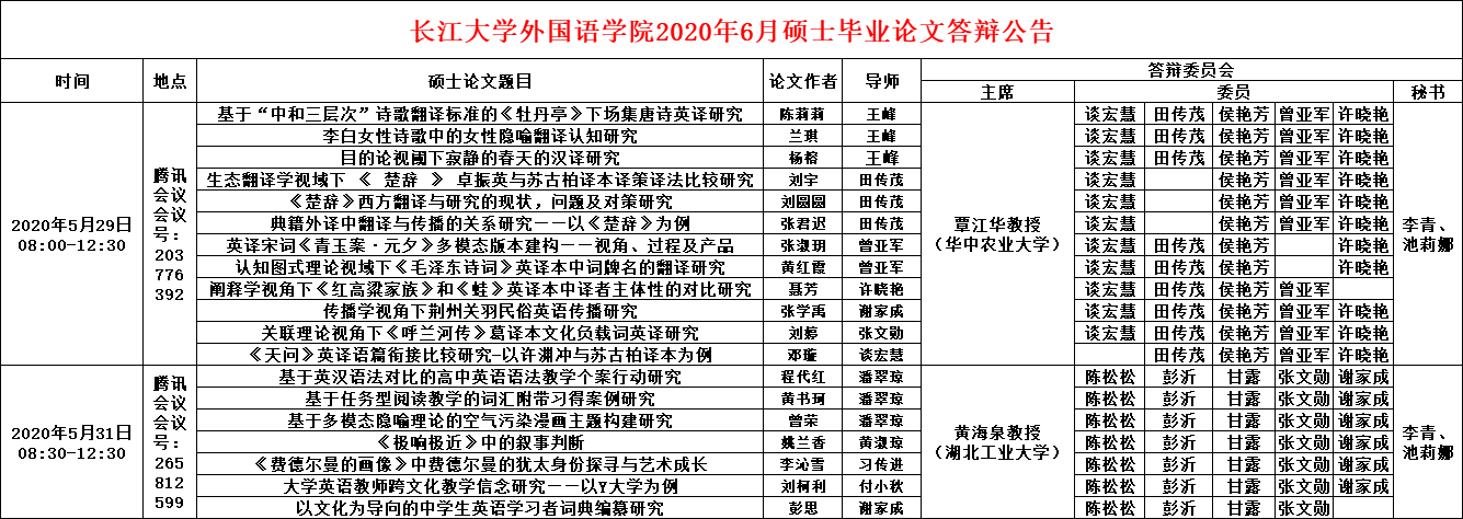 博鱼网页版2020年6月硕士毕业论文答辩公告