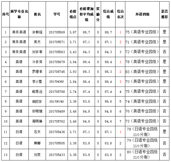 【推免公示】外国语学院2021届优秀本科毕业生免试攻读硕士学位研究生初选名单公示