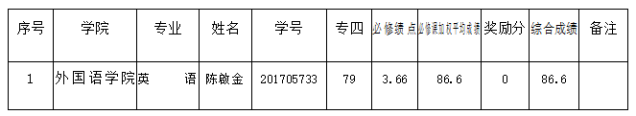由于外国语学院2017级英语专业陈鑫瑶(学号:201705550)因个人原因,自愿放弃2021年推免研究生资格(“硕师计划”),经外国语学院成绩测算,量化排队结果,教务处审核,依次递补陈啟金获得2021年推荐免试研究生资格(“硕师计划”),现予以公示,公示2天。公示期间如有异议可向所在学院、教务处反映,如有违纪,可向学校纪委举报。联系电话:外国语学院(0716)8060465,学校纪委(0716)8060598,教务处(0716)8060580。