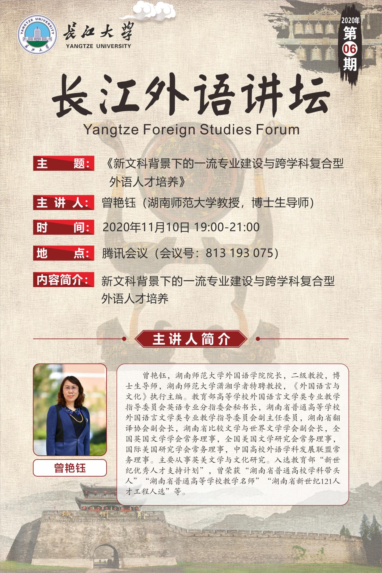 长江外语讲坛(第六讲):新文科背景下的一流专业建设与跨学科复合型外语人才培养