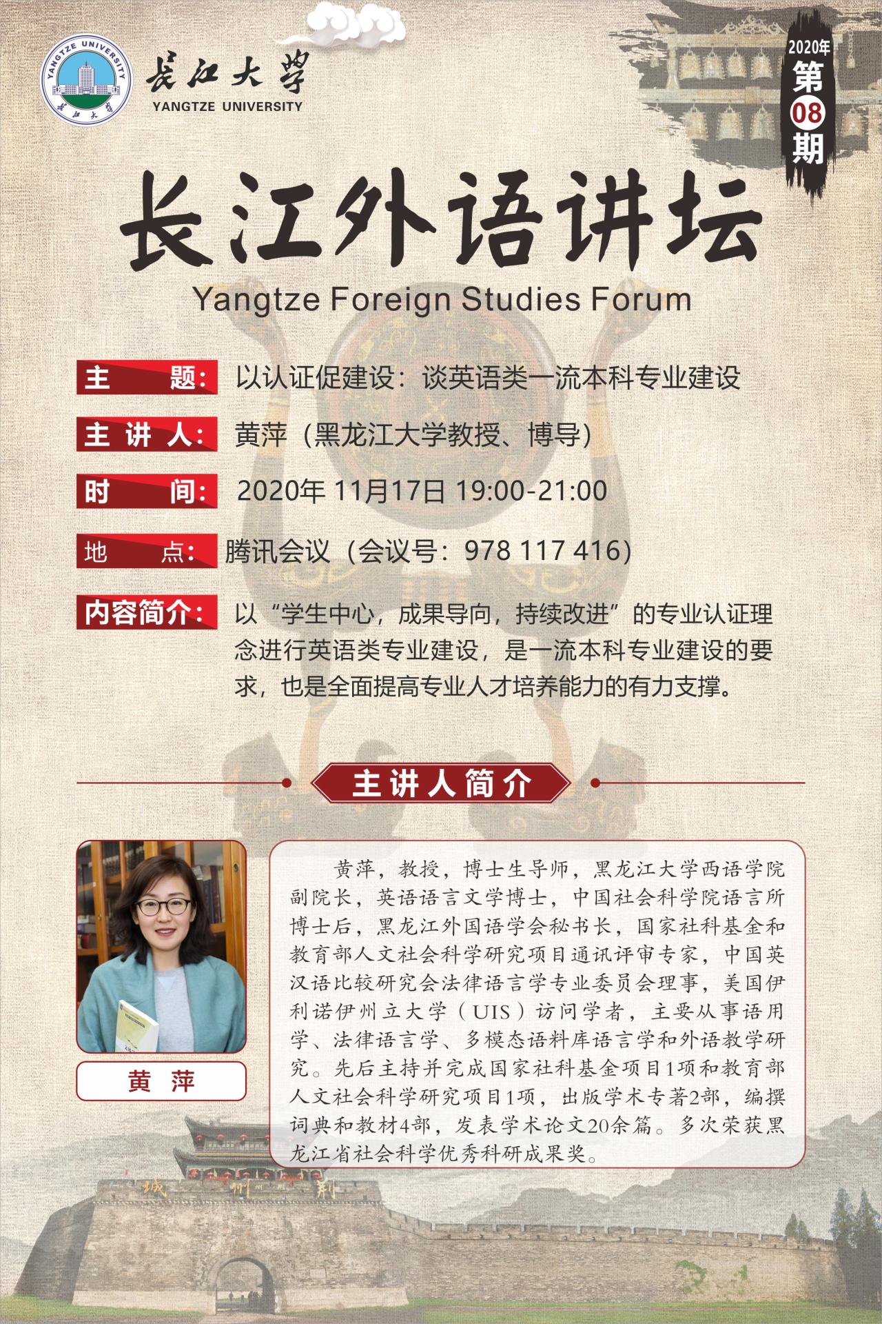 长江外语讲坛(第八讲):以认证促建设:谈英语类一流本科专业建设