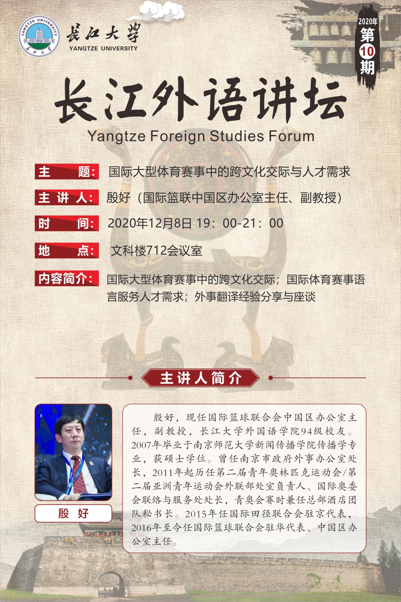 长江外语讲坛(第十讲):国际大型体育赛事中的跨文化交际与人才需求