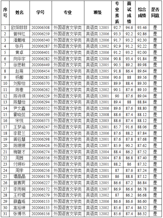 外国语学院2020级商务英语(卓越)班拟录取名单公示