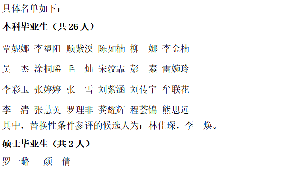 根据校学工部统一安排,经毕业生申报,各班推荐,学院学生工作办公室审核,学院党政联席会议讨论,确定我院2021年优秀毕业生名单。如对结果有异议,请于513日下午1700前实名向学院学生工作办公室反映。