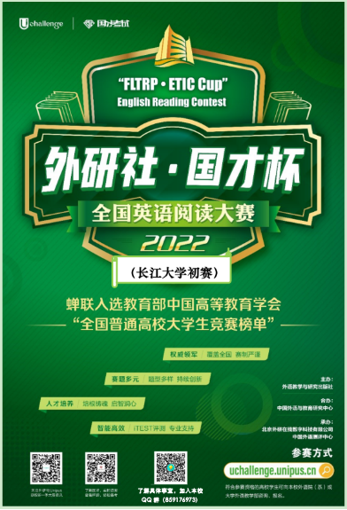 2022“外研社•国才杯”全国英语阅读大赛火热报名中!该赛事不收取报名费,含金量高,蝉联入选教育部中国高等教育学会“全国普通高校大学生竞赛榜单”。欢迎长江大学在校本科生及研究生踊跃报名。