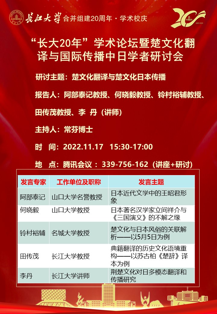 "长大20年"学术论坛:楚文化翻译与国际传播中日学者研讨会