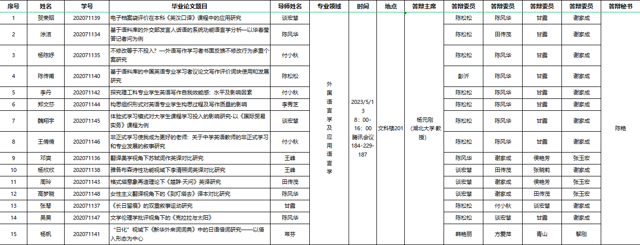 外国语学院2023年6月毕业研究生学位论文答辩安排