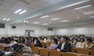 比赛开始前,彭院长上台致辞。他讲道:“用英语进行辩论是对头脑很大的挑战,所以我院始终如一地坚持举办这样的辩论赛。这种模式的辩论赛正是要考验同学们说服别人的沟通能力。”