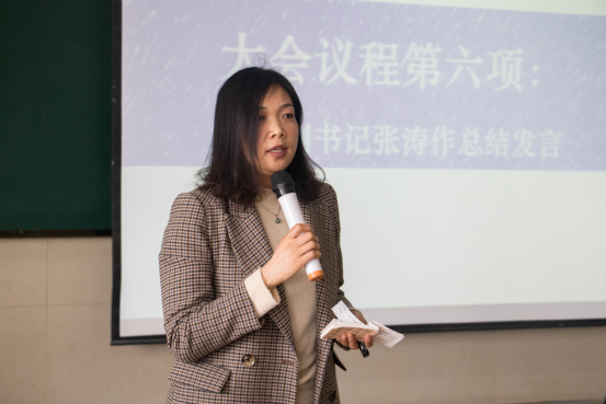 在全体 2017级学生进行学风建设宣誓后,大会进入尾声,李福兴老师、张涛副书记分别上台发言。李老师表示:“大学教育应当回归本质,注重本科教育是全球国际趋势。专四对学校、学生们来说都非常重要,希望大家重视起来。”并希望同学们在单词的记忆、听力、阅读、练习上多做努力。张涛副书记认为:“学习就是连续剧,结局是圆满的,过程是曲折的。“她相信,只要同学们坚持“四个回归”,加大投入,有效学习,培育学风,做到重视学习、比着学习、跟模范学习,老师们以学生的未来、学习、能力为根本,一定有望振兴外国语学院的专四辉煌!