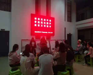 活动正进行到火热之时,主持人带领英翻11802班江陈月,马璨同学表演了一段可爱的舞蹈,再次将气氛推向了高潮!表演结束后主持人安排四个小圈里的同学进行同一个游戏由老师说出数字,同学们依次说出数字后面对应的内容这个游戏十分考验大家的记忆力和反应能力,大家玩的都非常的开心。晚八点,主持人从每个小圈中选两位同学,让这8位同学站在最前方,再一次进行这个游戏几轮游戏结束后,商英11804班张浩谦成为胜利者,在场所有同学对他说I Love You”。游戏结束后进行第二个话题的讨论——异性之间吃饭是否应该AA制。8点40分,活动进入尾声,主持人王珏做简单的总结后,活动圆满结束。