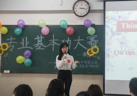(文/蔡萱 周海韵 摄/黄家乐)为加强同学们对英语基本功的重视程度,营造英语学习氛围,5月18日下午3点,我院在12教402举行了第十一届英语基本功大赛英语组比赛。本次比赛由邱雨欣同学和鲁瀚章同学主持,并邀请夏永红老师、李兰老师、彭沂老师,田传茂老师担任评委。