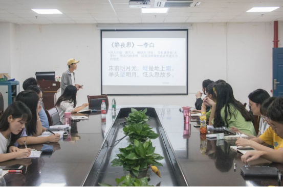 关爱留守儿童,传承家国文化。7月11日晚7时,阳光号列车暑期支教团古诗词试讲如火如荼进行。老师讲课幽默风趣,同学听课聚精会神,专家指导鞭辟入里,试讲活动顺利地完成。阳光号列车暑期支教负责人、外国语学院辅导员车桥、荆州市楚都中学(小学部)优秀老师梁晓蒙老师出席本次活动。