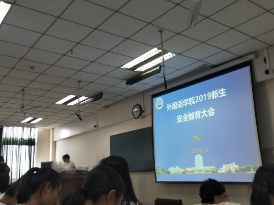 (摄/蔡萱 文/蔡萱)9月26日下午三点半,我院于12教302室召开了2019新生安全教育大会。参与会议的有大一辅导员薛阳老师,辅导员助理耿传令老师以及全体2019级新生。本次会议由薛老师主持,分为心理测评、学生安全、重要工作说明三个方面。