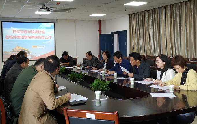 随后,学院院长谈宏慧向调研组成员汇报了外国语学院下半年重点工作及2019年度发展指标完成情况,指出了学院工作中存在的问题及解决办法,并结合本次专项调研内容,对学校教育、科研等工作提出了一些建议。