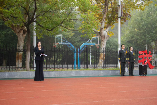 第一项,迎国旗。国旗护卫队队员迈着矫健的步伐护送鲜艳的五星红旗缓缓走来。第二项,升国旗,奏国歌。当雄伟庄严的国歌奏响,五星红旗冉冉升起,迎风飘扬,全体师生心潮澎湃向国旗行注目礼,内心的自信豪迈之情难以言表。随后,张涛老师做国旗下讲话。张老师希望大家尽快适应大学生的身份,找寻身边的榜样,读懂长大这本书。她为大家罗列了很多本校的名人事例,勉励大家以此为榜样,努力实现自身的价值。同时,她也告诫同学们要学会选择,选择安全、健康,“道路千万条,安全第一条”,安全二字要时刻铭记于心;还要选择自律,不能降低对自身的要求,做到独立自主。在主持人对张老师的讲话进行总结后,升旗仪式落下帷幕。伴着话语声,鲜艳的五星红旗迎风招展。