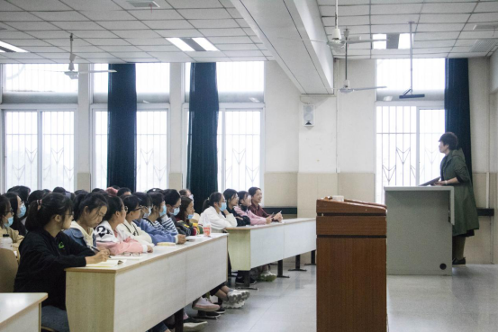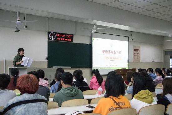 讲座伊始,王娟老师首先对英语系八个班的同学表示热烈的欢迎,并对他们今后的学习生活树立了新的目标和方向。王老师表示,大学英语专业的学习与小学、初中、高中的英语课有本质的不同,需要更系统更详细地学习英语的基础理论与知识,并且要着重培养听、说、读、写的技能。王老师还从办学历史和师资力量的方面着重介绍了英语专业的基本情况,并且说明了英翻和英教两个专业方向的实习和就业问题,让与会的大一新生们对自己的专业以及未来想要选择的方向有了深入的理解和把握。