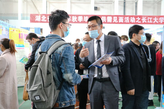 (通讯员:车桥)为应对复杂严峻的就业形势,帮助毕业生尽早就业,实现高质量就业,11月6日上午湖北省2020年秋季毕业生供需见面活动之长江大学专场招聘会在东校区体育馆举行,108家用人单位带来近1000个就业岗位,招聘总人数近3000人,涉及我校文学、管理学、法学、理学、工学等相关学院专业,吸引了1000余名本、硕毕业生参与,200余名毕业生与用人单位达成签约意向。据悉,招聘会还采用“线上+线下”形式同步举行,无法到场的毕业生,也能在线上进行同步求职,浏览招聘会所有企事业单位的岗位信息,进行线上简历投递。