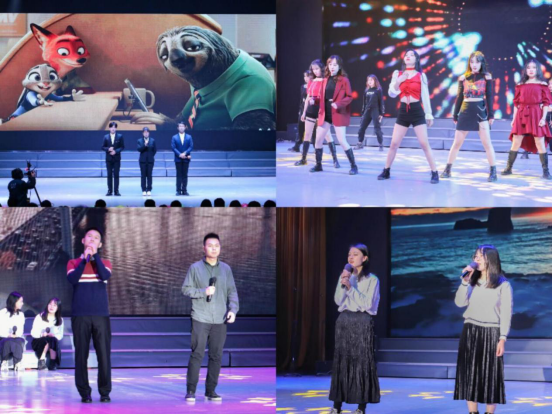 第一篇章“锦瑟年华,英姿勃发,青春激扬显担当”,歌曲《破晓》通过男女生别具特色的音色,将成长中的孤独徘徊和勇敢追寻娓娓道来;三位日语专业同学呈现的日语配音《疯狂动物城》,挑选了萌呆树懒闪电缓慢节奏逼疯兔子的经典片段,不同于大家熟悉的英语版本,引得大家开怀大笑;融汇了三种不同曲风的拉丁舞表演《Crown》,舞步摇曳,吸睛无数。