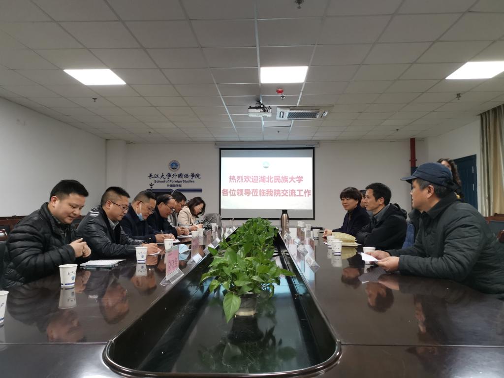 3月10日下午,湖北民族大学外国语学院院长骆贤凤、湖北民族大学实验室建设与管理处处长雷辉、发展规划处副处长田本军、教务处副处长郜红利,外国语学院学科建设科科长陈海兵、大学外语教学部主任周玉花、外语语言学习中心主任鲁晓红等一行7人来我院调研。调研座谈会在文科楼712会议室举行,学院领导谈宏慧、危煜祥、彭沂、程坤以及实验中心主任王爱国参加了座谈会。
