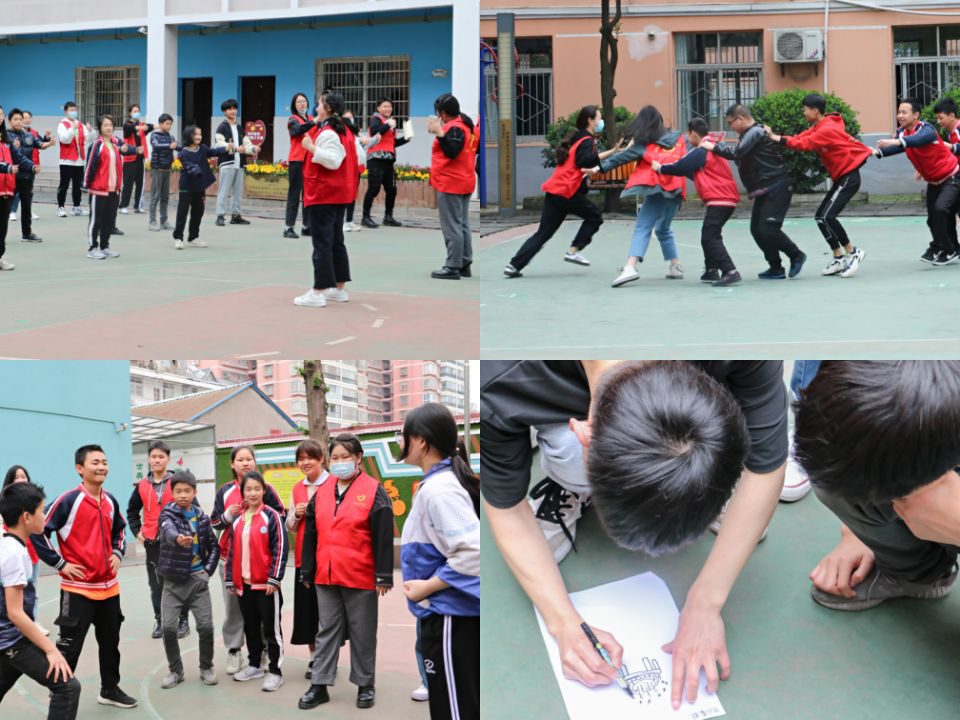 在抵达沙市特殊教育学校后,志愿者们与学校负责人进行了沟通,在老师的积极号召下,特殊儿童们纷纷积极参与到丰富多彩的游戏中。首先,黄曼妮带领孩子们做热身操-Tooty Ta song,在其热情洋溢的领操下,现场气氛活跃起来。接下来,游戏环节拉开帷幕:在“老鹰捉小鸡”游戏中,志愿者和孩子们你追我躲;在“老虎猎人枪”游戏中,各个小队成员卯足了力气,力争为队伍赢得更多的奖品;在“贴膏药”游戏中,孩子们纷纷你追我赶,大家虽然在游戏过程中流了不少的汗水,却始终绽放着开心的笑容;在“你画我猜”游戏中,孩子们发挥了自己丰富的想象力,各显身手;最后一个游戏“爱的抱抱”:一名志愿者站在圈圈的中间,其余的人围成一个大圈圈,当志愿者停止放音乐后,大家就要根据她所报出的数字来抱团取暖。经过几轮游戏下来,孩子们已经由刚开始的生疏害怕,渐渐到主动热情。在这些精心准备的游戏过程中,不仅收获了快乐,更增进了彼此间的感情。