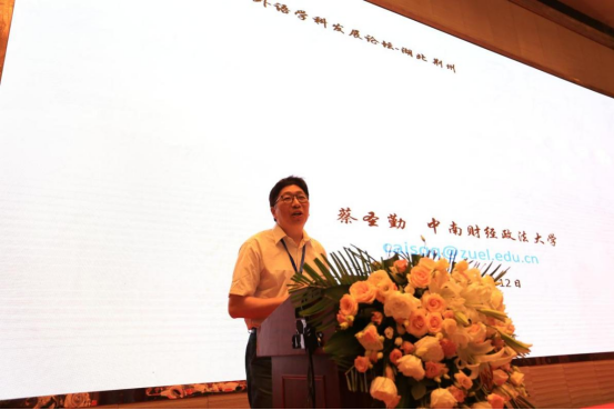 中南财经政法大学外国语学院院长蔡圣勤教授作《以国别区域研究为突破口,构建融合性新文科特色》的大会发言