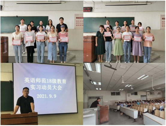 99日下午,在12102召开外国语学院2018级英语师范生教育实习动员大会,副院长彭沂老师,英语系主任王娟老师,英语系殷华、陈双玉、蒋娟老师及2018级全体师范生参加。