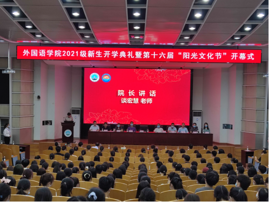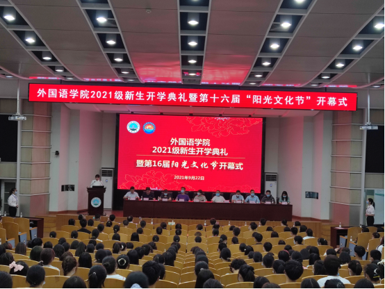 (通讯员:车桥)9月22日晚,外国语学院2021级新生开学典礼暨第十六届“阳光文化节”开幕式在12教405举行。全体院领导、校友代表、各系部负责人、新生班主任、辅导员、2021级全体新生和4600余名来自全国各地的家长朋友,通过现场和云端共同参加典礼。