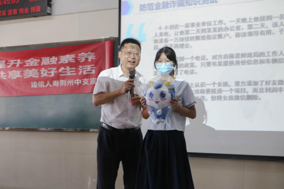 (摄/郭滋 文/张世瑾)新生入学教育是大学教育的起点,是整个大学学习阶段的关键时期,为帮助新生适应校园生活,提高学生防范电信网络诈骗的意识和能力,保护学生人身财产安全9月23日下午建信人寿保险有限公司荆州中心支公司来校,组织开展“防范电信诈网络诈骗,保护消费者合法权益”主题讲座活动,在12教404为近300余名师生讲授防电信诈骗安全知识。