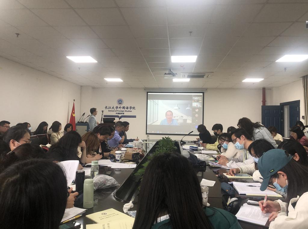 本次分享活动的主题是课程思政。活动首先由教育部教学科研一体化外语教学研究虚拟教研室负责人南开大学外国语学院张文忠教授做指导发言。张教授提出课程思政应围绕价值、知识、能力、及德行四个维度,注重显性和隐性两种方式,围绕学科特色,做实做真,切实履行高校立德树人的根本宗旨。