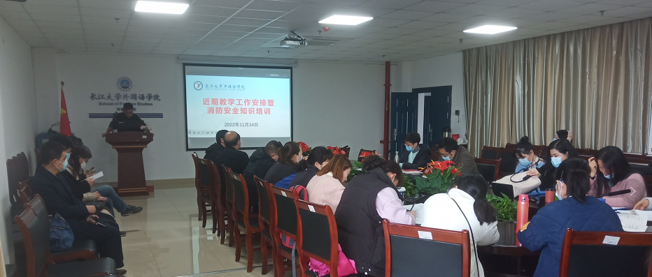 11月24日下午,学院通过线上线下结合方式召开了全体教职工大会。公外教学部教师在文科楼712会议室参会,日语系教师和行政人员在文科楼713会议室参会,英语系与商务英语系教师在文科楼9楼“教师活动室”参会,武汉校区教师线上参会。会议由学院党委书记危煜祥主持。