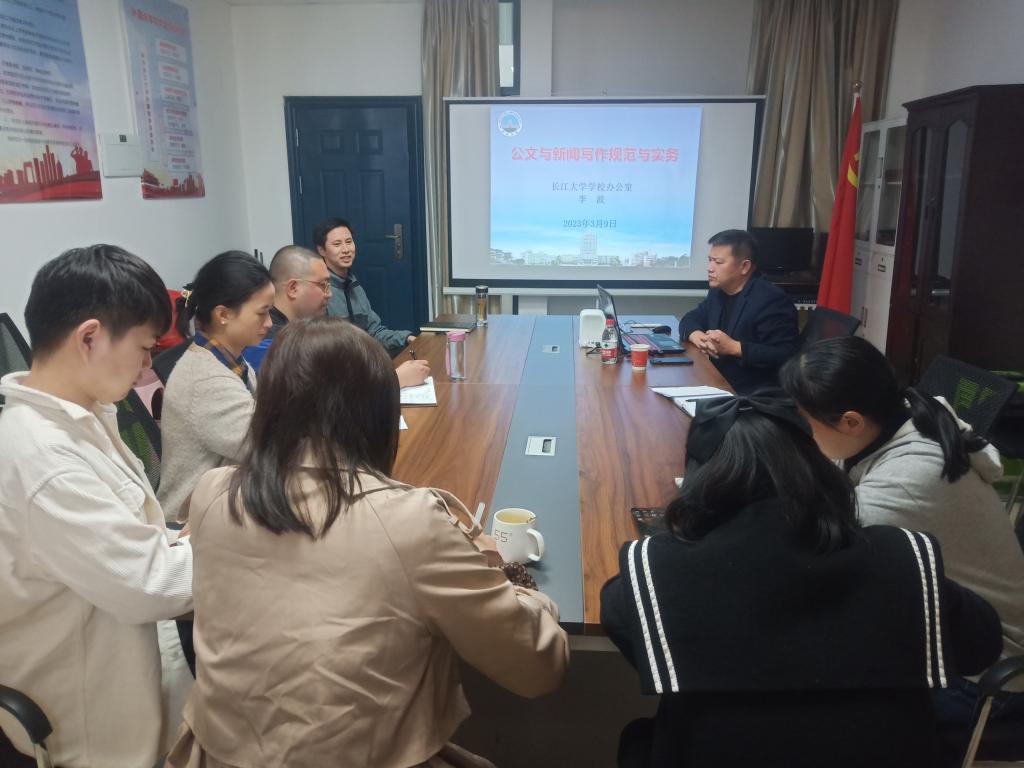 (通讯员 张文)为提升专职管理人员的业务能力与工作水平,3月9日下午,学院党委邀请学校办公室副主任、保密办公室主任、政策研究室主任李波作了一场“公文与新闻写作规范与实务”的专题培训。培训会在文科楼713会议室举行,学院全体专职管理人员聆听了讲座。讲座由学院党委书记危煜祥主持。