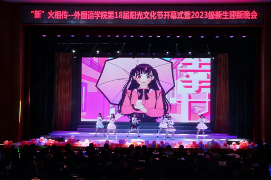 晚会紧扣“新火相传”主题,分“忆往昔,砥砺坚守初心”、“展未来,阳光开拓未来”两个篇章呈现。晚会伊始,外国语学院党委书记周杰代表学院致辞,在致辞中,周书记详细阐述了我院“阳光文化”的历史沿革、精神内涵和育人途径,激励师生崇尚阳光精神,培养阳光心态,塑造阳光人生。