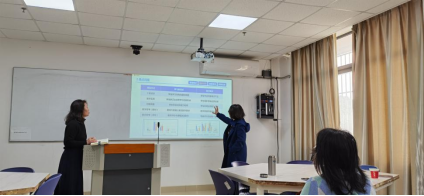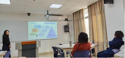 活动伊始,参赛教师王娟围绕《跨文化交际》的课程概述、痛点分析、创新途径与创新成效进行汇报。汇报结束后,院长谈宏慧从教姿教态、PPT的呈现形式等方面进行了指导,帮助王老师提升教学展示效果。副院长付小秋则建议聚焦于课程本身,深入剖析该课程的痛点问题,为课程的进一步优化指明了方向。