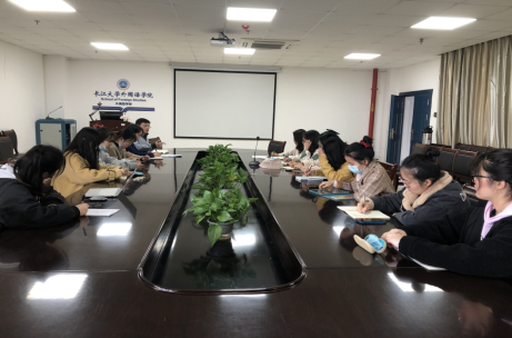 20214月8日下午4点,外国语学院研究生会全体成员在文科大楼712会议室召开了2021年研究生会第一次全体会议。此次会议由研究生会主席团成员王聪聪主持。党委副书记程坤老师、团委书记兼研究生辅导员许泽琼老师以及全体研究生会成员参加了此次会议。会议分为三个议程:工作汇报、工作安排、研究生学会的定位与发展讨论。