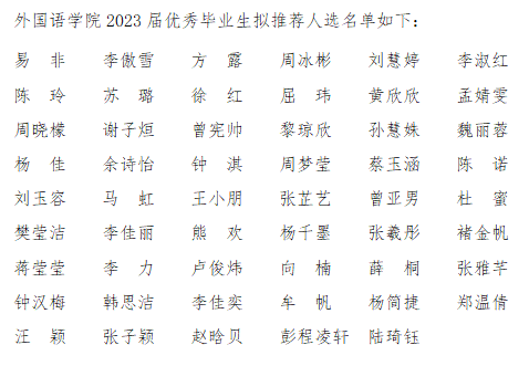 外国语学院2023届优秀本科毕业生拟推荐人选名单公示