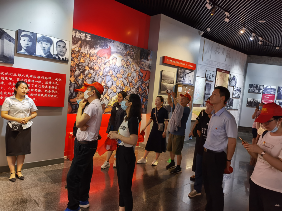 在宣化店中原突围纪念馆,通过讲解员的详细讲解和观看视频,党员们对1946年6月26日-7月31日历时36日的中原突围历史有了更深入的了解,被中原军区5万多名战士以无比顽强的毅力突出重围,粉碎国民党军30余万人围追堵截的战斗精神深深感动。