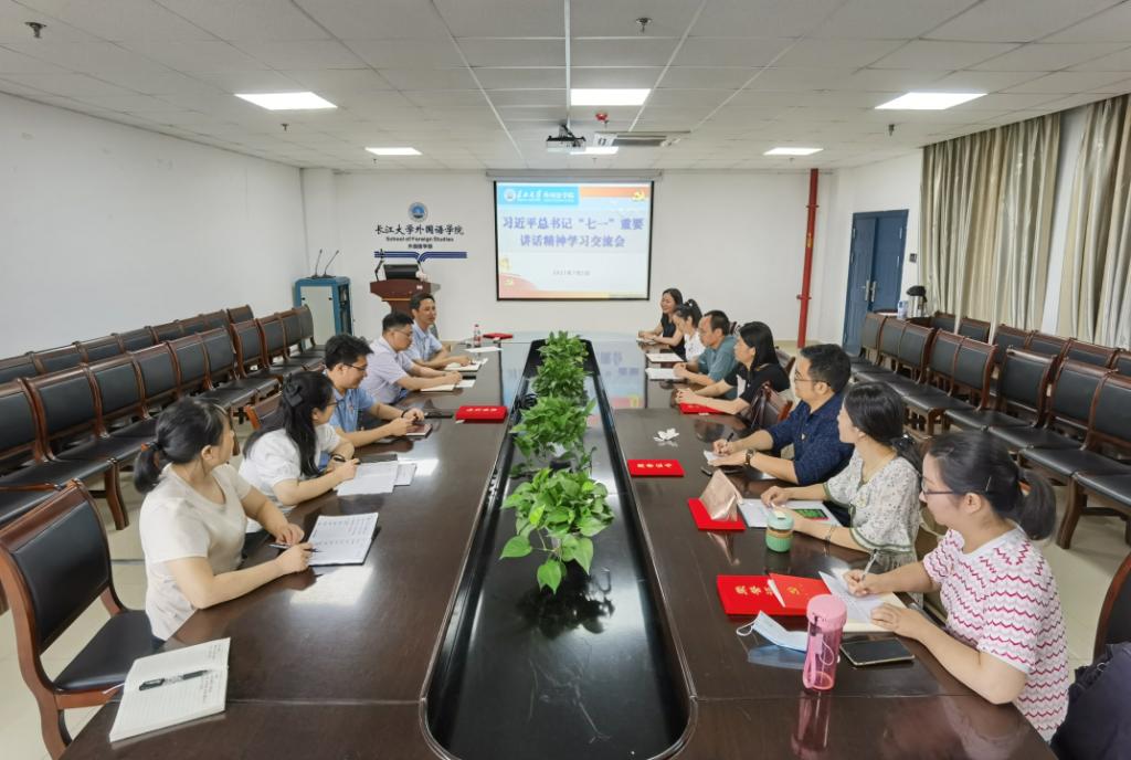 7月6日上午,外国语学院党委在学院会议室召开党员代表座谈会,交流习近平总书记“七一”重要讲话精神学习体会。学院党委负责人、各党支部书记、受校院两级表彰的“两优一先”代表参加了座谈,武汉校区党员代表通过线上方式参加。