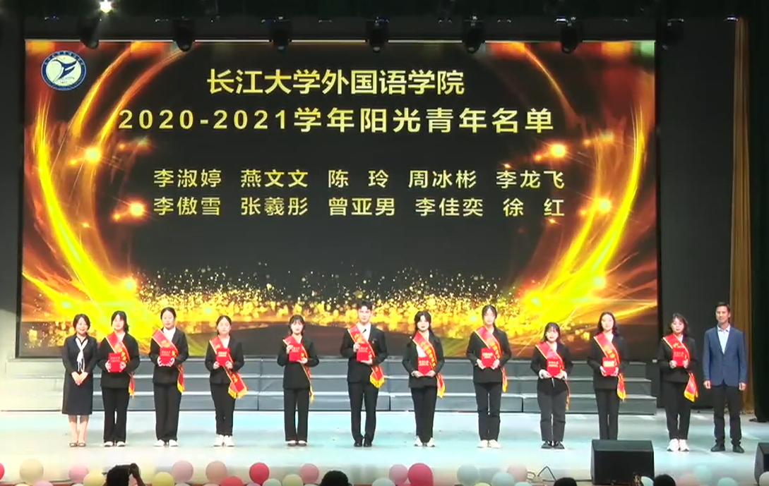 “树立榜样,表彰先进”。副院长彭沂宣读了外国语学院关于表彰“阳光青年”“阳光班级”的决定。院长谈宏慧、党委书记危煜祥为获得“阳光青年”的10名优秀大学生颁发获奖证书,副院长彭沂、付小秋为获得“阳光班级”的8个先进班集体颁发获奖证书。