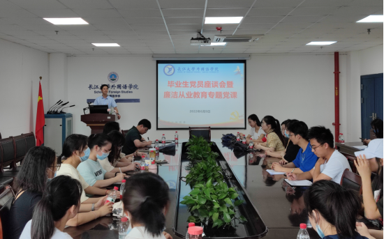 (通讯员:车桥)凤凰花开话别离,又是一年毕业季。6月9日下午,外国语学院召开2022届毕业生党员座谈会暨廉洁从业教育专题党课。院党委书记危煜祥、党委副书记程坤、毕业年级辅导员车桥、全体毕业生党员参加。会议由程坤主持。