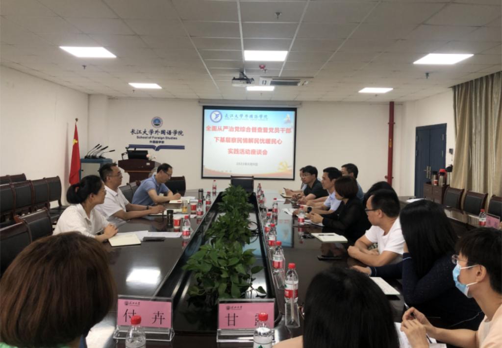 6月9日下午,校党委书记王建平在校纪委副书记陈平中、学校办公室科长童虹的陪同下,来到外国语学院开展党员干部下基层察民情解民忧暖民心实践活动调研和全面从严治党综合督查。学院党政负责人、教师党支部书记、系部主任、分工会负责人、教师代表共12人参加座谈。