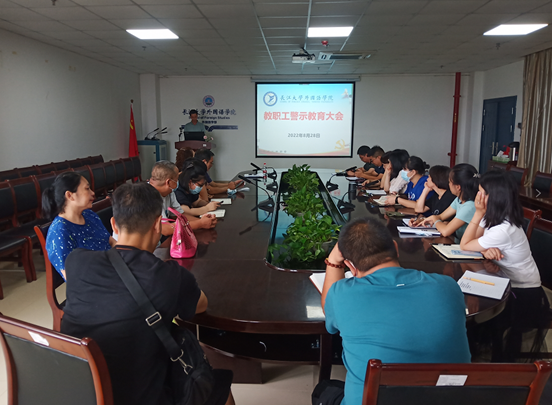 8月28日下午,外国语学院以线上线下结合的方式召开了全院教职工警示教育大会,学院全体教职工参加了会议。