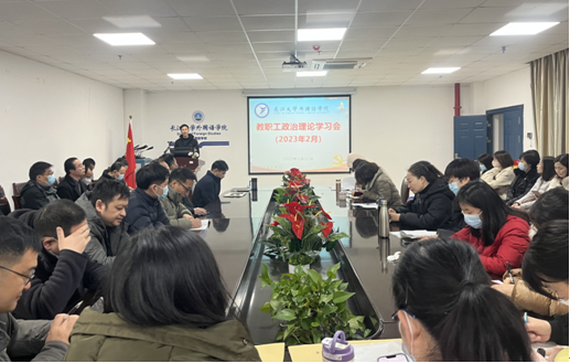2月12日上午,在全院教职工大会上,学院党委组织全体教职工开展了政治理论集中学习。会议由党委书记危煜祥主持并领学。