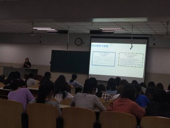 在考风考纪教育环节,童老师通过诚信教育理念入题,将学校近来年因考试违纪处分的案例一一呈列分析,同时将本院两起考试违纪处理情况和学生解除处分后,顺利读研的励志故事与年级学生进行了分享。童老师强调诚信是立人之本,离开诚信,健康金钱荣誉和地位将化为泡影。另一方面做人知耻而后知勇,青年阶段知错能改,用发展的眼光看待问题会走得更加长远和坚定。