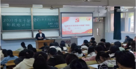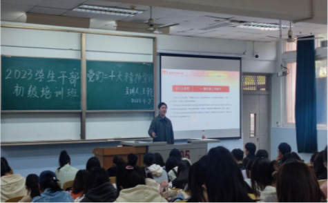 (文/张肖慧子 图/许姗姗)4月2日下午,外国语学初干班第一次授课在13教105教室进行,长江大学青年宣讲队成员——医学院分团委书记王乾以“在新时代党的阳光照耀下前进”为题给初干班学员进行了党的二十大精神的宣讲。会议由外国语学院分团委书记许泽琼主持,学院107名初干班成员参加了培训。