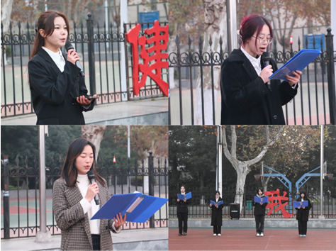 升旗仪式第三项是外国语学院教师代表何稳老师发表国旗下的讲话。何老师激励外院学子要时刻保持对祖国的热爱和感恩之情,勇于担当使命,为实现国家富强、民族振兴的伟大事业贡献自己的青春力量,彰显出勇于前行、不向风险困难低头的精神。随后由学生党员进行宪法晨读活动,增强外院学子的法治意识。升旗仪式最后,主持人宣布升旗仪式结束,同学们也开始健康跑起来。