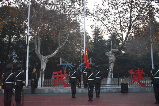(文/张宇 摄/袁凌灿 田源)为了弘扬爱国主义精神,坚定理想信念,12月4日上午,外国语学院在东校区田径场举行了升旗仪式,全体大一、大二学生参加本次升旗仪式。