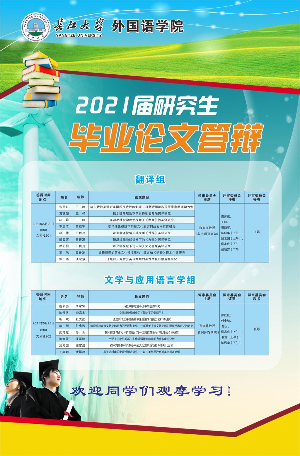 博鱼网页版2021年5月硕士毕业论文答辩公告