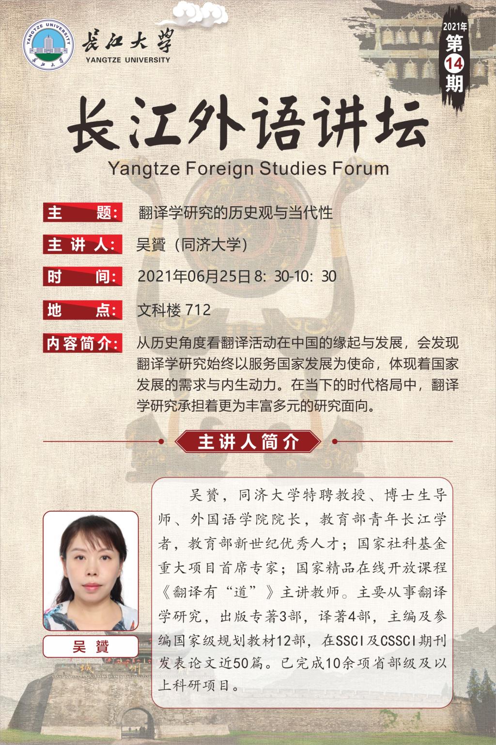 长江外语讲坛(2021年第十四讲):翻译学研究的历史性和当代性